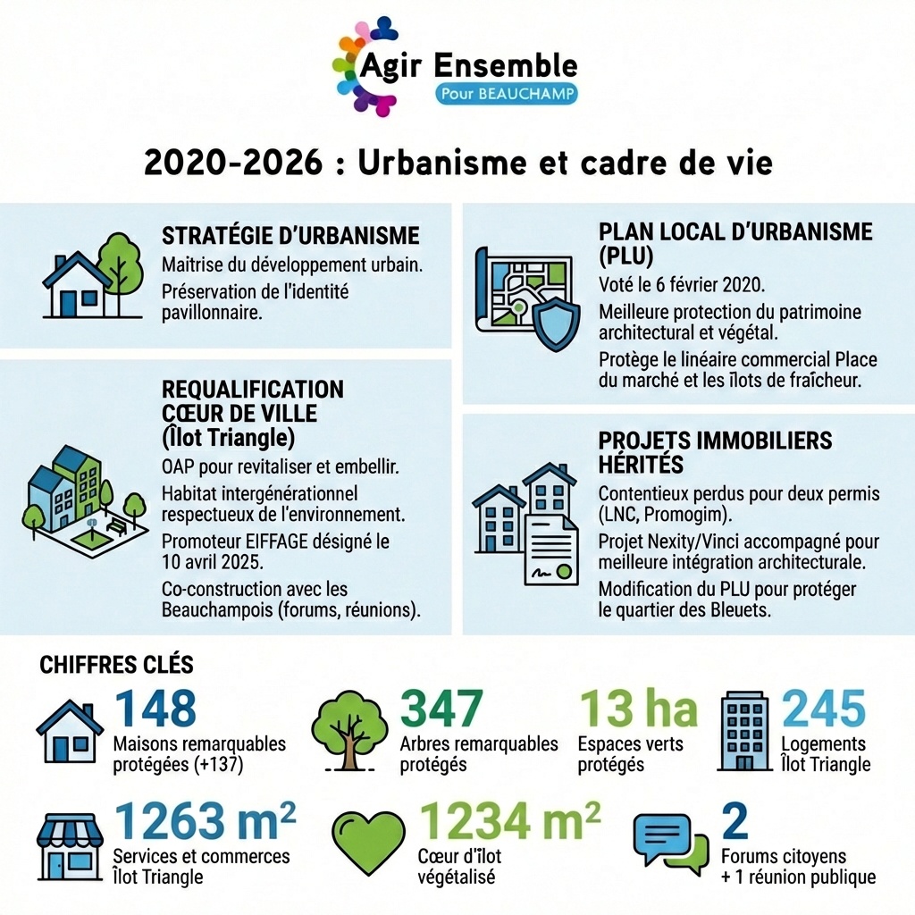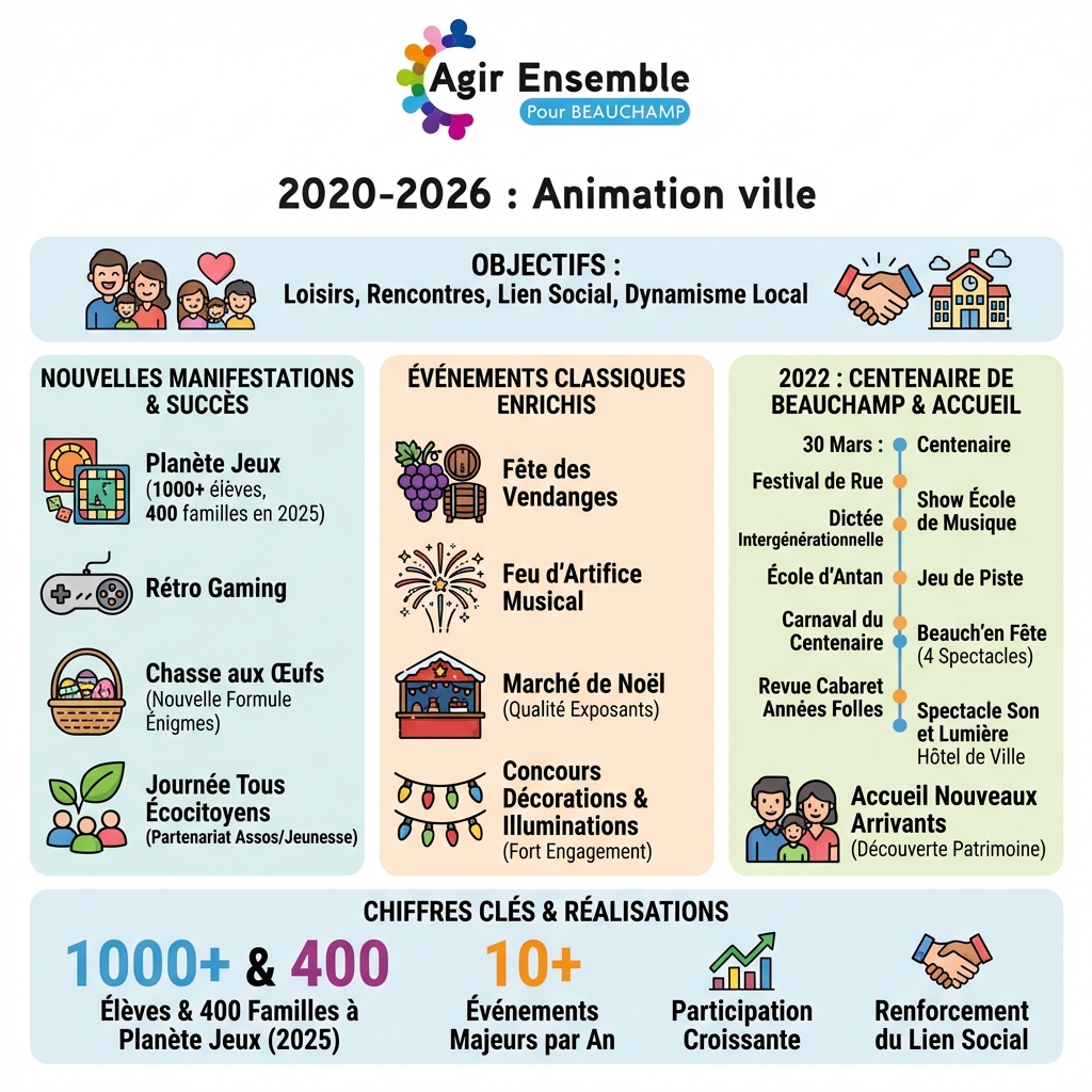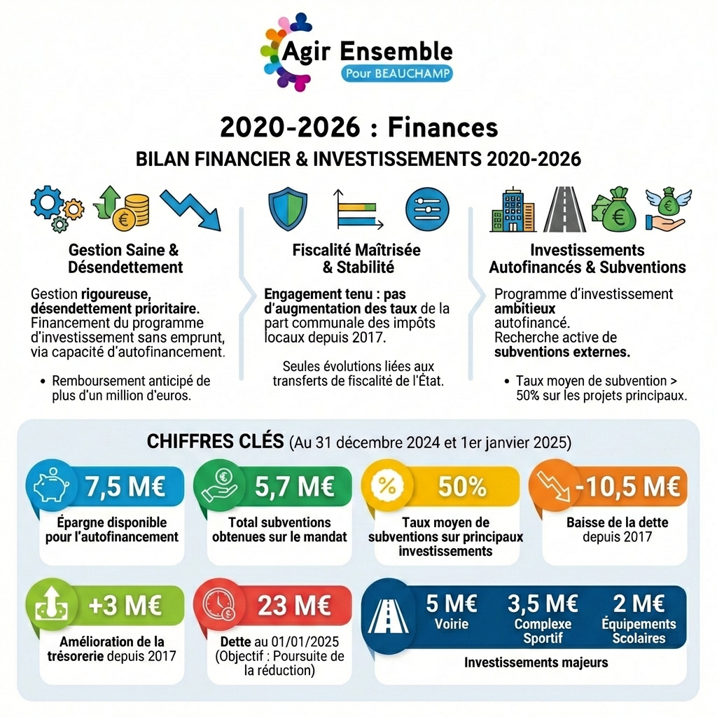 Durant le mandat 2020/2026, avec mon équipe, nous nous sommes engagés avec passion et ambition pour les Beauchampois.