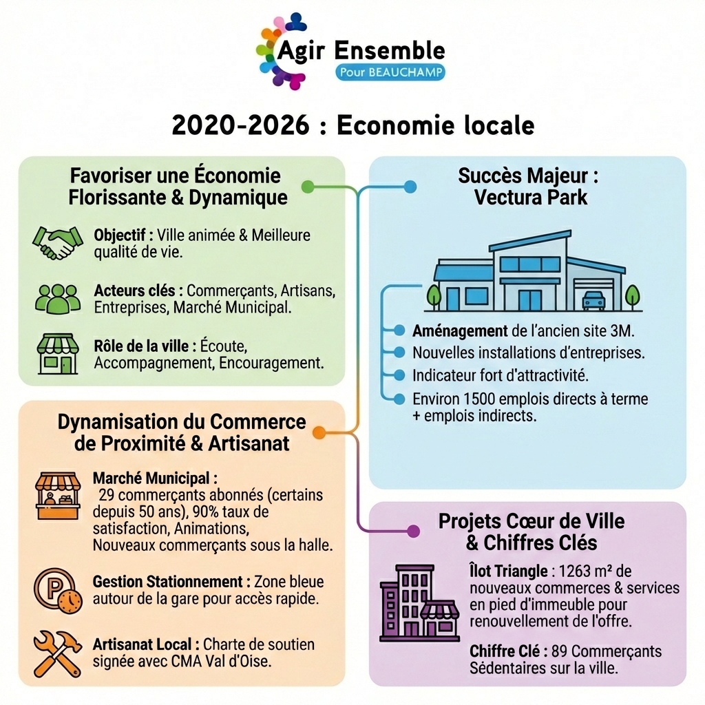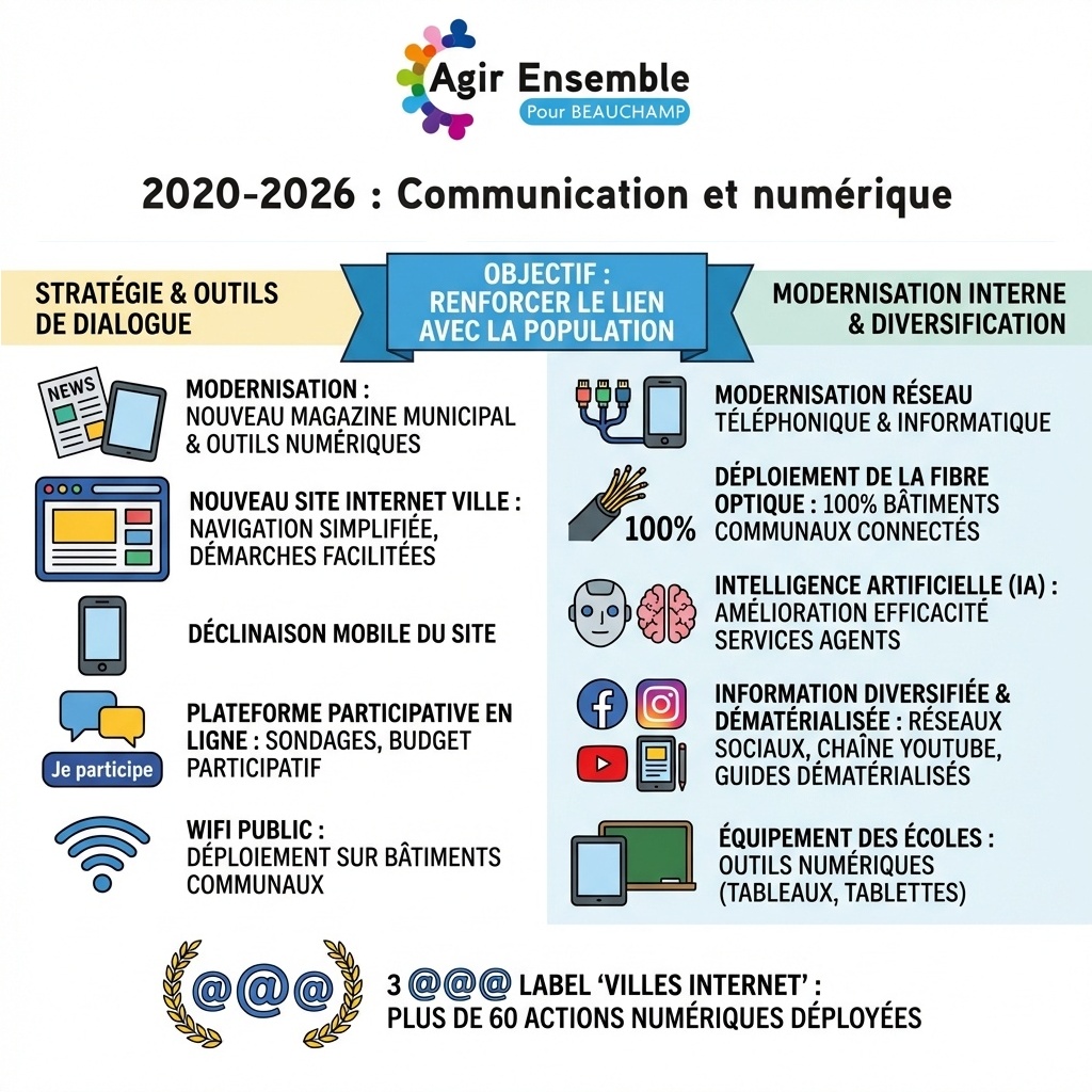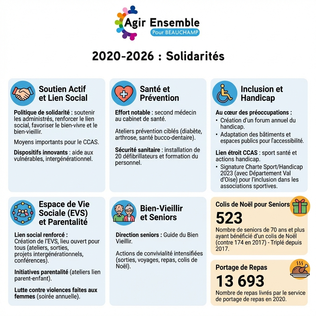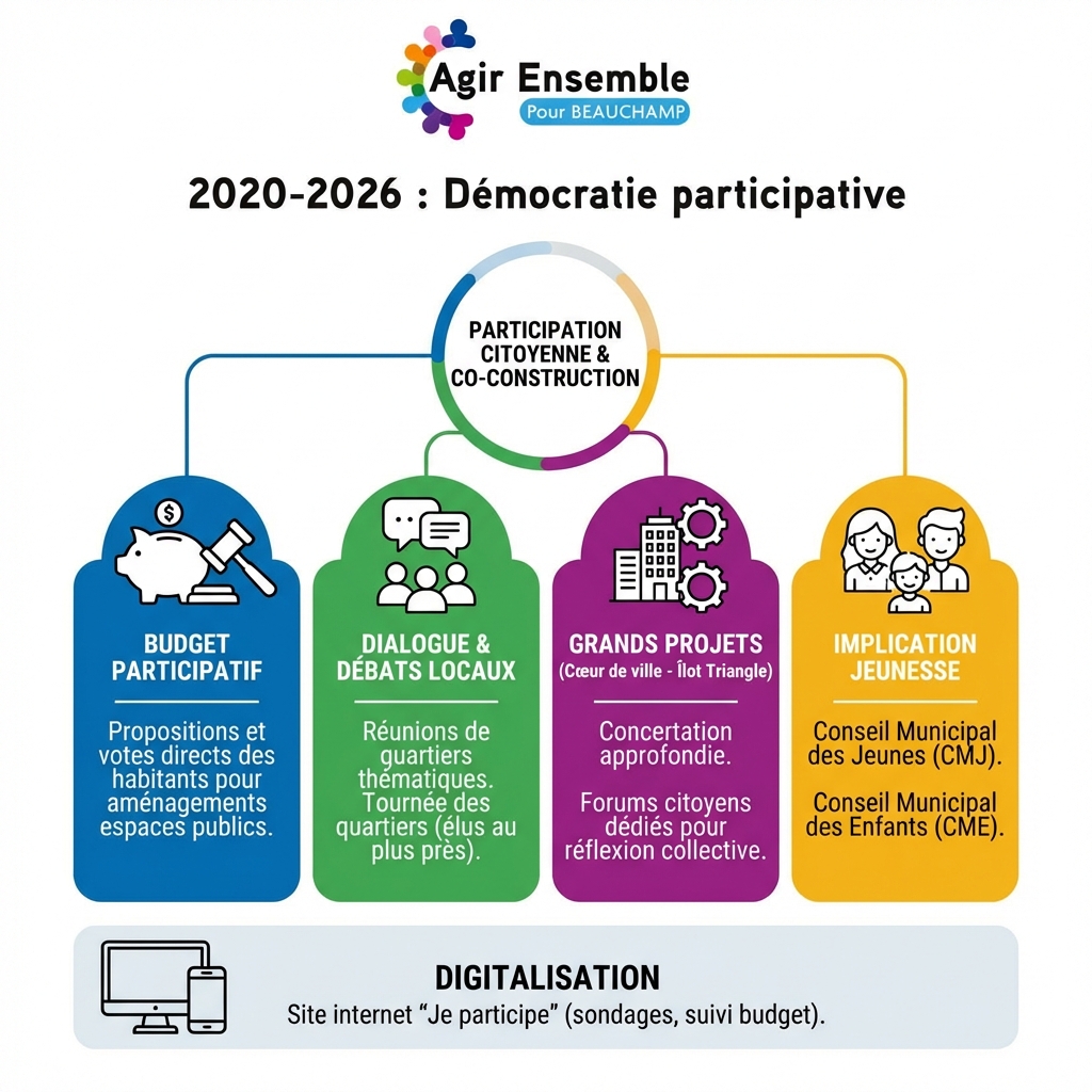 Durant le mandat 2020/2026, avec mon équipe, nous nous sommes engagés avec passion et ambition pour les Beauchampois.